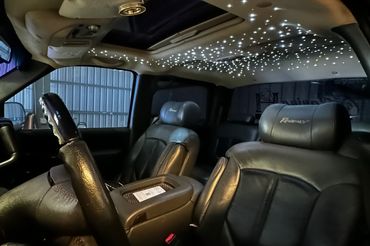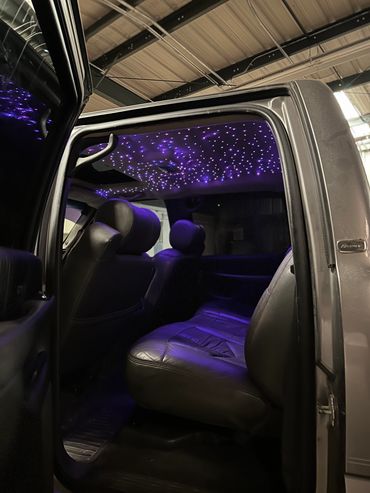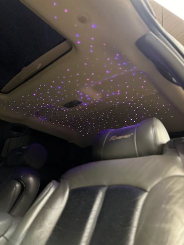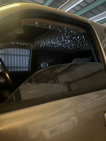 We offer a variety of different styles and options to fit your needs anywhwere from 400 to 2000 lights in your headliner! It is a very delicate process that can take several days to complete, but once finished you will have the luxury of a Rolls-Royce in your own vehicle!